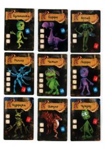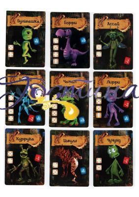 Проста і весела гра не дасть вам нудьгувати ні за яких обставин!Мета гри: знайти монстрика, значення на картках якого збігаються зі значеннями на випали кубиках, і прокричати його незвичайне ім'я, наприклад «Казазяка!» або «Параплюх!». Думаєте, це дуже просто? А ви спробуйте!