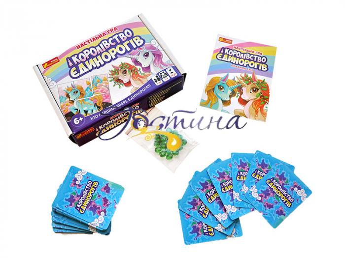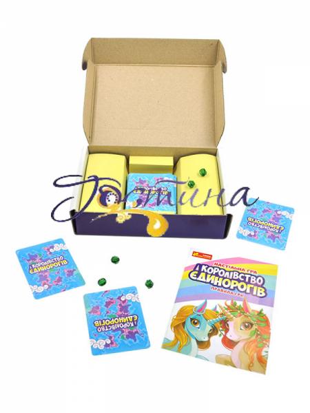 Настільна гра на швидкість! Для всієї сім`ї та дитячої компанії! Правила прості – швидше за всіх зібрати зображення єдинорога. Переможе найпрудкіший та найуважніший! Разом із єдинорожками ігровий процес стає по-особливому захоплюючим. Проводимо час весело, цікаво та корисно!Набір містить:- 24 карти із зображенням едіноріжок (4 комплекти про 6 карт)- 20 карт 'Кристалик'- 8 карт 'Ніч'- 3 карти 'Веселка'- 20 кристаликів- Правила гри