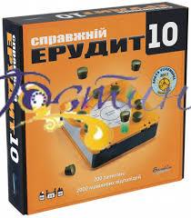 Справжній Ерудит 10 — це гра-вікторина, у якій кожен дістає шанс і бере активну участь: є 10 варіантів відповідей на одне з 200 питань, і всі гравці або команди можуть відповідати на кожне питання. Так що вам не потрібно довго чекати своєї черги. Ваша мета — дати якомога більше правильних відповідей. Якщо ви відповідаєте правильно, ви здобуваєте окуляри. Якщо ви помиляєтеся, ви виходите з раунду та втрачаєте щойно набрані очки, тому важливо знати, коли час відповідати, а коли ні. Гра компактна та зручна для перенесення: всі 200 питань із відповідями на 100 двосторонніх картках, лічильники очок і маркери відповідей входять до компактного ігрового блока.