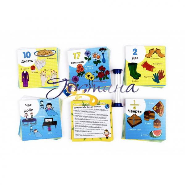Гра для всієї родини У Скриньку Знань може одночасно грати від 2 до 10 людей. Кожен з гравців повинен взяти з коробки картку, вивчити її протягом 10 секунд (час вимірюється пісочним годинником), а потім відповісти на питання по ній, обране кидком кубика. Якщо гравець дав правильну відповідь – картка залишається у нього, якщо ж ні – повертається назад у скриньку. Переможцем стає той, хто збере найбільшу кількість карток за 10 хвилин, ну або поки картки не закінчаться. Грайте всією сім'єю або удвох з малюком – в будь-якому випадку буде цікаво. Переваги Скриньки Знань: Веселий та простий спосіб навчання Покращує навички читання, спостережливість, пам'ять Чудова сімейна гра для всіх поколінь Підходить для дітей від 4 років Виготовлена з безпечного матеріалу