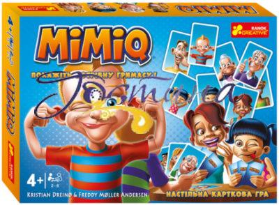 Покажіть потрібну гримасу! Настільна карткова гра Крістіана Дрейно та Фредді Мюллер Андерсена.Час гри: одна партія приблизно15 хвилин.Склад гри: - 33 картки- інструкціяПеревірте свою пам'ять і м'язи обличчя за допомогою гри Mimiq! Гарний сміх - половина успіху… Грайте усією родиною й робіть смішні фото один одного або селфі!))) Ви ж не кожного дня бачите бабусю с розтягнутими щоками або тата з великими вухами та круглими очима?)) А мама колись показувала, як може звернути губи трубочкою, що здається наче вона вдихнула в себе пів обличчя та начебто стала ще стрункіша?) А на кого схожий дідусь, коли витріщує очі та показує язика набік?)Здається, ви не все знаєте про свої мімічні здібності та потенціал у кривлянні один одного!))Мета гри: зібрати найбільшу кількість комплектів із трьох однакових карт.Як грати: заберіть картки в інших гравців, показуючи при цьому найкумедніші вирази обличчя! Зберіть комплект із 3 однакових карт. Якщо у вас немає необхідної карти - просто покажіть язик своєму суперникові!