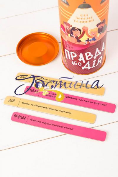 ?Компанійська гра «Правда або Дія» широко популярна у всьому світі. Вона часто з’являється в різних кінофільмах, і завдяки елементарним правилам і яскравим враженням, в неї особливо полюбляють грати на вечірках. «Правда або Дія: для Веселої Компанії» – це спеціальна версія гри, призначена для веселої компанії, в яку найкраще грати, зібравшись в компанію веселих і галасливих друзів.