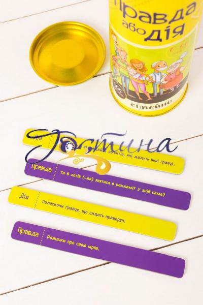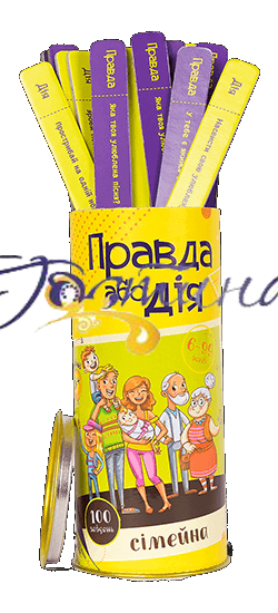 Гра Правда або дія: Сімейна - це черговий якісний варіант популярної в усі часи забави «Правда чи Дія», в якому ви знайдете п'ятдесят питань і п'ятдесят завдань спеціально для членів сім’ї віком від семи до ста років. Так що, як в аналогічній забаві для товариських вечірок, бігати до сусідів і кукурікати не доведеться. Швидше чекайте питань зі шпилькою про шкільні успіхи, відкладені до зарплати гроші і завдань на покупку квітів для жіночої половини сімейства.?Правда або дія: Сімейна зміцнить ваші стосунки і дозволить дізнатися багато нового про мешканців вашого будинку. Можете навіть спробувати розговорити свою собаку або кота. Їм теж є що сказати про свої секретики і бажання.