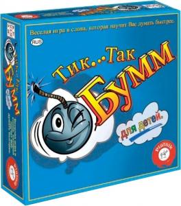 Правила гри Тік Так Бумм для дітей дуже прості. Перший гравець тягне тематичну карту, включає таймер у вигляді бомби - і називає слово на задану тему, а після цього передає бомбу по колу. Той, в чиїх руках бомба вибухне - програв. Він забирає картку собі і починає нове коло. Тік Так Бум - одна з самих веселих ігор, в які нам доводилося грати! Діти просто обожнюють гри, де важлива швидка реакція і кмітливість. Бомба, що цокає додає грі динамічності і азарту. Час до 'вибуху' кожен раз виставляється випадковим чином. Тематичні карти з чудовими ілюстраціями і цокаючий таймер у вигляді гарматного ядра - що ще потрібно, щоб грати з друзями і в колі сім'ї, розвиваючи кмітливість і швидкість мислення? Гра для 2-12 гравців від 5 років.