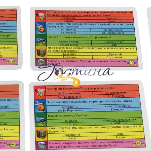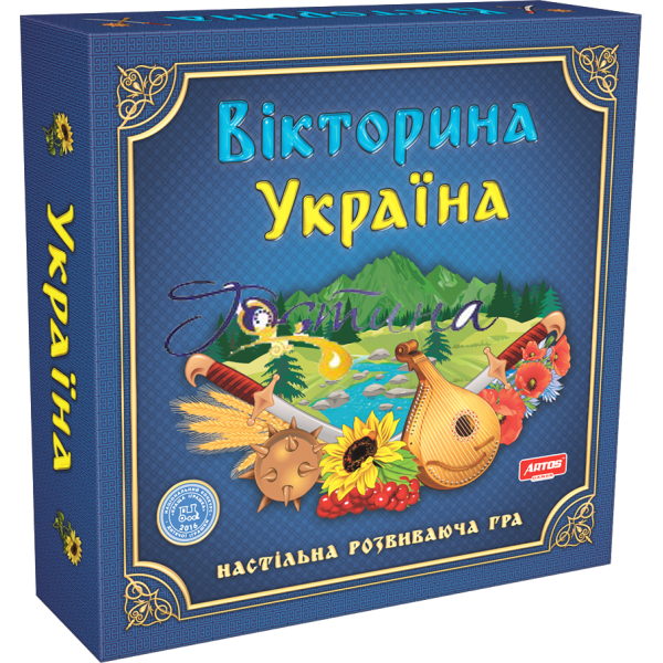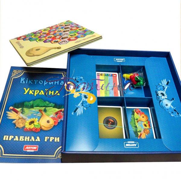 Настільна розвиваюча гра Вікторина Україна - це інтелектуальне змагання для тих, хто в першу чергу любить Україну, відчуває себе українцем і хоче перевірити і поповнити свої знання про її історії, географії та культурі.