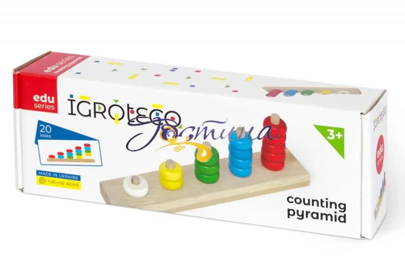 Навчальна дерев'яна гра "Пірамідка-рахівничка", IGROTECO 900439