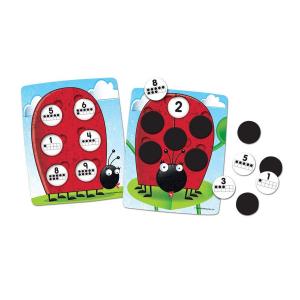 Комашки-розумняшки - навчальна гра, яка допоможе дитині освоїти рахунок до 10 в ігровій формі, удосконалить основи складання, навчиться розпізнавати числа. Як грати? Принцип гри ідентичний бінго: кожен гравець бере двосторонню картку з сонечком з шістьма цифрами від 1 до 9 (сторони відрізняються рівнем складності)Чорні фішки розмістіть на середині столу, чорної стороною вгоруКожен гравець по черзі бере одну фішку і перевертає їїЗаберіть фішку, якщо ви можете скласти з двох цифр (на картці і на фішці) число 10. Наприклад, на фішці число 3, на картці потрібно знайти 7, щоб в сумі вийшло 10Переможцем стає той, хто першим закриє всі цифри на картці.Навчальна гра LEARNING RESOURCES - комашки-розумняшки сприяє розвитку математичних здібностей, логіки і концентрації уваги. У комплекті: 6 двосторонніх карток з сонечками 20 * 15 см72 чорні фішки з цифрамиГрайте в команді від 2-х до 6-и осіб. Рекомендовано для дітей від 5 років.