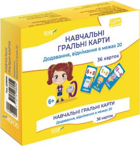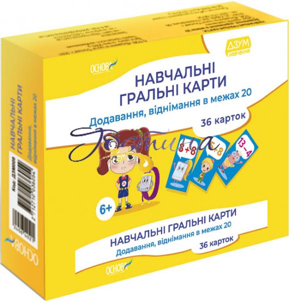 ДЗУМ-навчання — серія навчальних книг та ігор, які допомагають дітям вчити математику, англійську мову та розвивати логіку разом з цікавими персонажами — родиною ДЗУМІВ! Гральні картки “Додавання, віднімання в межах 20” — один з найзахопливіших способів для дітей удосконалити навички усних обчислювань, розвинути пам’ять, швідкість реакції, увагу. Цільова аудиторія