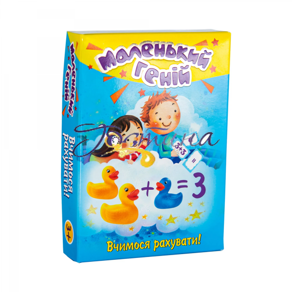 «Маленький геній» — навчальна гра для найменших. З трирічного віку можна починати активно розвивати математичні здібності дитини. Спочатку познайомте його з найпростішими основами — лічба у межах 10. У цьому наборі є двосторонні картки з цифрами, прикладами, загадками та знаками. Усе це допоможе легко опанувати та запам'ятати матеріал в ігровій формі, а предмети, зображені на картках, розширять словниковий запас малюків. Такі ігри прекрасно розвивають логіку, уважність і вчать дітей мислити послідовно.