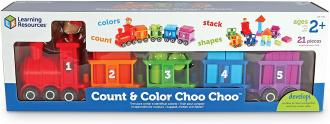 Навчальні ресурси підраховують і кольорові чу-чу. Дві класичні іграшки для малюків в одній! count & color Choo Choo заохочує раннє число та навички підрахунку завдяки своїм нумерованим вагонам поїздів, тоді як барвистий вантаж складених фігур забезпечує розваги, що покращують моторику. Вантаж допомагає маленьким учням у рахункових навичках, оскільки один машиніст поїзда поміщається у вагон 1, два блоки входять у вагон 2. Посібник із дій включає в себе відповідність, забарвлення та сортування, а також пісню "все на борту", яку потрібно вивчити під час гри. Підтримує цифри 1-5 та класичні фігури раннього віку (коло, трикутник, прямокутник та квадрат). підходить для віку 2+.