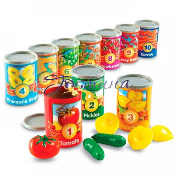 - кожна баночка з картинками фруктів або овочів пронумеровано від 1 до 10;