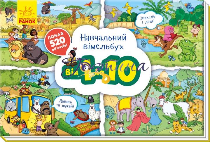 Навчальний віммельбух «Від 1 до 10» — це не тільки цікава книжка для розглядання, але й чудовий тренажер для лічби. На кожному її розвороті намальовано від 5 до 14 груп предметів для перелічування. А також це чудовий привід зібратися всією родиною, роздивитися картинки, обговорити героїв і навіть позмагатися в лічбі