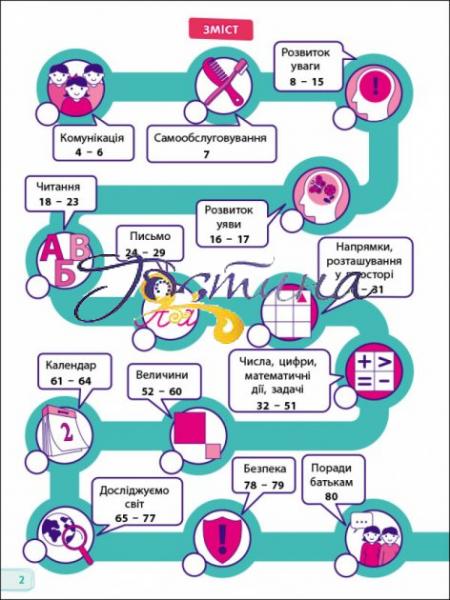 Все, що вам потрібно знати і вміти перед школою. Вправи за напрямками: - комунікація - самообслуговування - розвиток уваги - розвиток уяви - лист - читання - математика - кален - досліджуємо світ - безпеув Окремо - поради батькам.