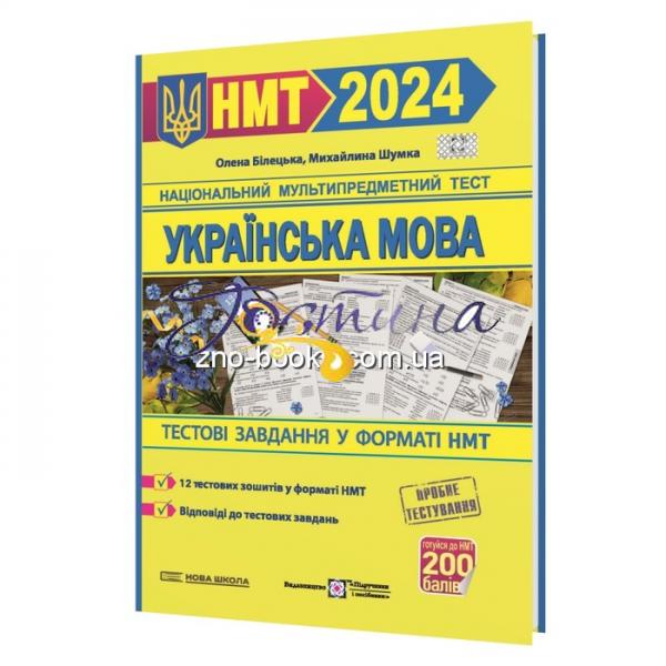 Посібник містить тестові завдання в актуальному форматі НМТ. Орієнтовних варіантів тестових завдань з української мови в посібнику всього 12. На початку посібника наведено Демонстраційний варіант НМТ з відповідями. Кожен варіант тесту складається із 30 тестових завдань. Зміст завдань відповідає вимогам Програми зовнішнього незалежного оцінювання з української мови, затвердженої МОН України.