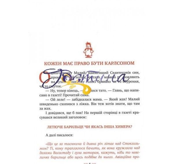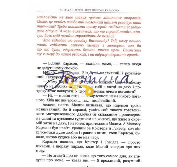 «Нові пригоди Карлсона, що живе на даху» — так називається третя книжка про твоїх улюблених героїв, написана через 13 років (1968) після першої. Що не сторінка — то нові оказії. Тож не барися, поринай у читання.
