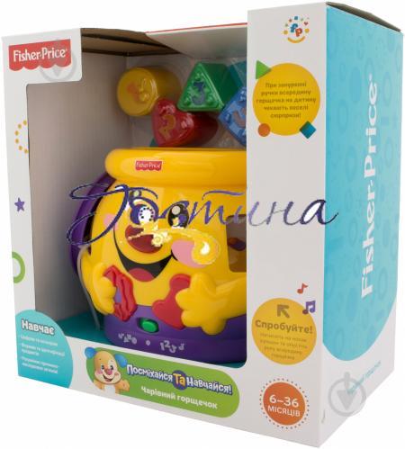 Цей веселий музичний горщик навчить Вашого малюка розрізняти форми (круг, трикутник, квадрат, зірочка і сердечко) та рахувати від 1-го до 5-ти. Іграшка має два режими - вивчення форм і цифр. Музичні сюрпризи і веселі коментарі, які промовляє горщик, допоможуть малюку вчитися. Коли горщик розмовляє з малюком або співає йому свої веселі пісеньки - його носик привітно сяє. Натискай на носик ще раз і почуєш його веселий голос, коментарі, пісеньки та сміх. Горщик - своєрідний сортер, в отвори якого потрібно вставити різні фігури - форми для печива. Форми виконані з різноколірного пластика (жовтого, червоного, зеленого, синього і фіолетового кольорів), завдяки чому, граючи з малюком можна вивчити кольори. На формах написані різноколірні цифри від 1 до 5-ти. Якщо дія виконана правильно - горщик назве яка фігура була вставлена або яка цифра на ній написана. Зберіть всі форми в середину горщика і отримайте веселий приз! У комплекті: музичний горщик з кришкою; 5 форм.