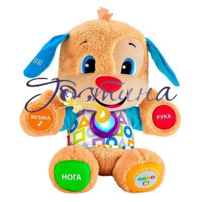 Інтерактивне розумне цуценя стане справжнім другом для вашого малюка. З ним дитина зможе не тільки весело провести час, а й дізнатися багато нового. Спеціальна технологія Smart Stages дозволяє вибрати один з 3-х рівнів навчання в залежності від віку малюка. Щеня допоможе вивчити нові слова (про частини тіла), заспіває різні навчальні пісеньки (про рахунок, алфавіт та інші), навчить кольорам та назвам тварин. На грудях у цуценяти є інтерактивне серце, яке загоряється у відповідь на натискання малюка (якщо натиснути та утримувати, прозвучать 20 пісень підряд). Дитина обов'язково подружиться з м'яким, яскравим песиком, буде разом з ним співати і танцювати. Іграшку можна обіймати і лоскотати, насолоджуючись м'якою шерсткою. Щеня співає і говорить українською.