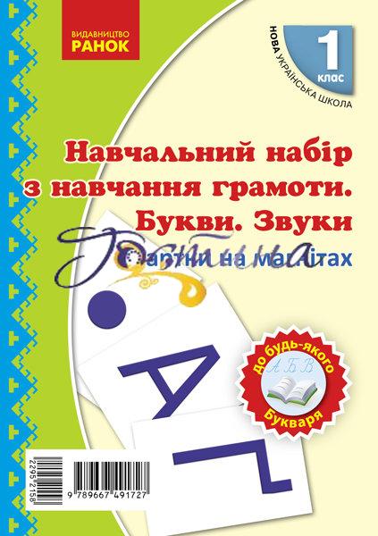 В папці 64 двосторонні картки з великими і малими буквами і знаками, магніти (36), методичні рекомендації щодо використання комплекту (96 в.).