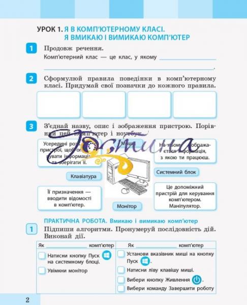 Зошит-посібник містить теоретичний матеріал; інтегровані завдання, спрямовані на розвиток системного, критичного і креативного мислення; таблиці, схеми, алгоритми роботи з комп’ютером; практичні роботи. Матеріал подано в цікавій і доступній формі з урахуванням психологічних особливостей другокласників.