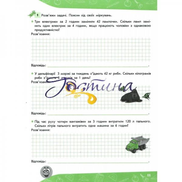 Завдання різного рівня складності сприяють диференційній роботі з учнями, а системні перевірочні роботи допомагають здійснювати контроль знань. Приємним доповненням до завдань стануть яскраві наліпки для заохочування учнів.