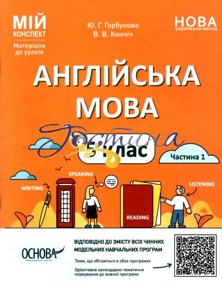 НУШ 5 клас. Англійська мова. Мій конспект. Матеріали до уроків. Частина 1. Горбунова Ю.Г.