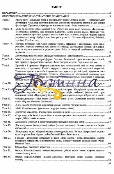 У посібнику подано розгорнуті конспекти уроків з української літератури для 5 класу за модельною навчальною програмою «Українська література. 5–6 класи» для закладів загальної середньої освіти (автори: В. Архипова, С. Січкар, С. Шило), орієнтовне календарно-тематичне планування, контент для дистанційного та онлайн-навчання, а також додатки.