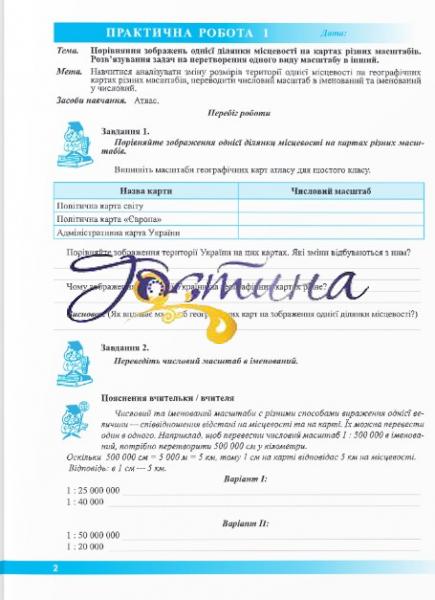 Зошит містить практичні роботи, завдання яких розроблені відповідно до модельної навчальної програми з географії (авт.: С. Запотоцький, Г. Карпюк, Р. Гладковський та ін.) і спрямовані на формування здатності учнів застосовувати теоретичні знання в практичній діяльності. У зошиті подано необхідні контурні карти.