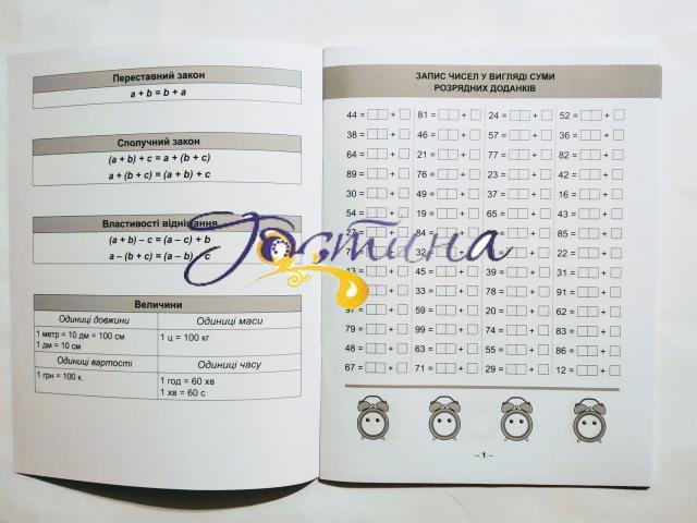 Мета цієї тренувальної зошити - навчити школяра обчислювати швидко і, перш за все, правильно. Завдання розміщені з поступовим ускладненням. Тренування слід проводити без перевантажень, не більше 5 хвилин на стовпчик, там, де присутні у виразах дві дії - близько 10 хвилин. Після виконання всіх вправ у колонці, можна оцінити свої досягнення.