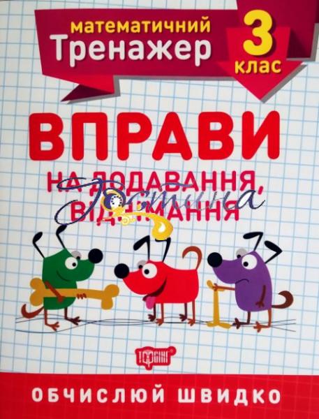 Посібник "НУШ. Математичний тренажер 3 клас. Вправи на додавання і віднімання" містить приклади з додавання і віднімання за програмою Нової української школи для третього класу.
