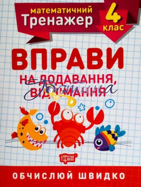 Посібник "НУШ. Математичний тренажер 4 клас. Вправи на додавання і віднімання" містить приклади з додавання і віднімання за програмою Нової української школи для четвертого класу.