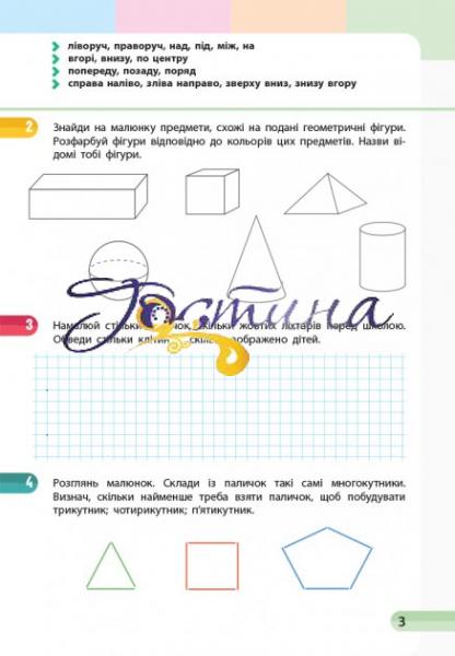 Посібник складений відповідно до Типової освітньої програми, розробленої під керівництвом О. Я. Савченко, і є складовою навчально-методичного комлексу з математики для 1 класу авторів С. О. Скворцової, О. В. Онопрієнко. До комплексу входять видання: навчальний зошит у 4 частинах, роздавальні матеріали, дидактичні матеріали для практичних робіт, розробки уроків.Навчальний зошит містить матеріали для першої чверті навчання: тексти правил; зразки міркувань; завдання на актуалізацію опорних знань, створення проблемної ситуації та ї ї розв'язків язання, первинне закріплення, формування вмінь і навичок, неперервне повторення. Навчальний матеріал поданий у цікавій та доступній формі з урахуванням психологічних особливостей першокласників.Усередині посібника наведено роздавальні матеріали до деяких уроків, які можна відокремити від основного зошита.Роздавальні матеріали до всіх уроків доступні для завантаження на сайті interaсtive.ranok.com.ua.Призначено для учнів 1 класу закладів загальної середньої освіти, вчителів початкових класів.Схвалено для використання у загальноосвітніх навчальних закладах комісією з педагогіки та методики початкового навчання Науково-методичної ради з питань освіти Міністерства освіти і науки України (лист Інституту модернізації змісту освіти Міністерства освіти і науки України від 20.06.2018 р. № 22.1/12-Г-383).