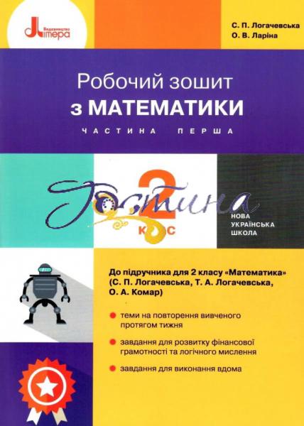 Математика 2 клас робочий зошит Логачевська схвалений до використання у закладах освіти, що навчаються за програмою НУШ. На кожній сторінці зошита позначена сторінка підручника Математика 2 клас Логачевська, якій він відповідає. Зошит складається з 64 сторінок та покликаний оптимізувати навчальний процес і створити можливості для формування математичних компетенцій у школярів молодшої школи. Видання складається з двох частин і окрім завдань з математики пропонує матеріал для виконання в рамках інтеграційних уроків з курсом «Я досліджую світ».