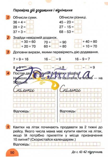 Робочий зошит з математики 2 клас пропонує одну сторінку з різноманітними завданнями для кожної теми уроку. Велику увагу приділяється різним методам обчислення, складу числа, короткому запису умови задач тощо. В кожному завданні наведено приклад зі стрілочками з пропонованим способом розв’язання завдання.