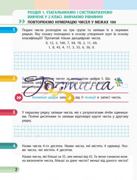 Для комплексного вивчення предмету Міносвіти рекомендує активно застосовувати з математики 3 клас навчальний зошит Скворцова. Посібник має друковану основу та містить 4 змістовні частини. Перша частина зошита включає задачі на розв'язування, зразки їх виконань, важливі правила та пам'ятки, а також цікавий роздатковий матеріал. Зразки показують учню послідовність виконання типових вправ та допомагають швидко запам'ятати алгоритм розв'язання задач.