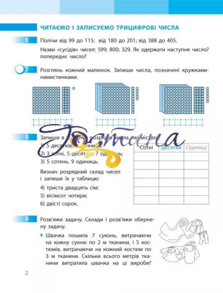 Зошит складається з двох частин. Друга частина містить матеріали до другого семестру навчання і може використовуватись на різних етапах засвоєння учнями змісту навчання. Посібник сприяє організації самостійної пізнавальної та дослідницької діяльності учнів, урізноманітненню видів роботи на уроці, ефективному формуванню математичних понять і способів дії. Капелюхом позначено завдання для учнів з високим рівнем пізнавальних потреб і можливостей. Матеріал подано з урахуванням психологічних особливос тей сучасних