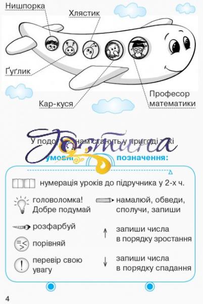 Робочий зошит складений відповідно до нової програми з математики, поурочно узгоджений з підручником «Математика» для першого класу (авт. О. М. Гісь, І. Ст. Філяк). Робочий зошит сприяє формування загальноосвітніх умінь і навичок учнів, а також призначений для кращого засвоєння ними програмового матеріалу.Зошит складається з чотирьох частин, містить велику кількість завдань пізнавального та пошукового характеру, що активізує творчі здібності учнів.Для учнів першого класу закладів загальної середньої освіти, гімназій, а також для вчителів, методистів і батьків.