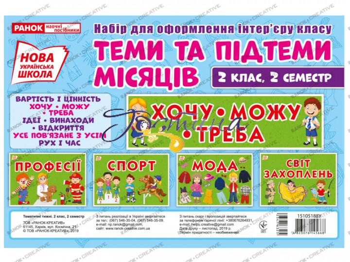 НУШ Набір для оформлення інтер`єру. Теми та підтеми місяців. 2 клас, 2 семестр.