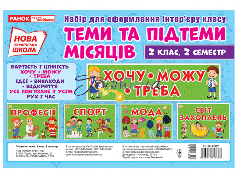 НУШ Набір для оформлення інтер`єру. Теми та підтеми місяців. 2 клас, 2 семестр.