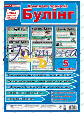 Що таке булінг? Це агресивна свідома поведінка дитини або групи дітей стосовно іншої, що супроводжується регулярним психологічним тиском. Найбільш поширене це явище в шкільних навчальних закладах. Які причини, наслідки і як цьому запобігти? Відповіді на ці питання знаходимо у комплекті плакатів про булінг. Використовуємо плакати на виховних годинах чи розміщуємо для інформативності у класі. Під час занять допомагаємо дітям усвідомити наслідки булінгу та навчаємо їх, як правильно протидіяти цьому.