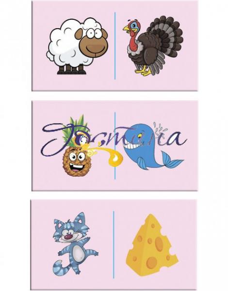 Кожна картка, як і в звичайному доміно, розділена на дві частини, на обох намальовані різні картинки. Починати гру можна з будь-якої картки. Наприклад, дитина бере картку з зображенням слона, називає слово, визнає останній звук у слові слон (звук [н]), добирає картку зі словом, яке починається зі звуку [м] . Це слово носоріг. Поруч намальована білка. Дитина визначає останній звук у слові білка (звук [а]), добирає картку зі словом, яке починається зі звуку [а]. Таким чином гравці викладають яскравий ланцюжок. Можна ускладнити гру: запропоновати гравцям визначати кількість звуків у словах.