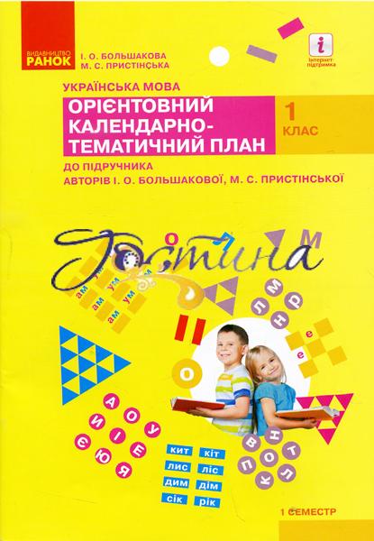 Орієнтовний календарно-тематичний план з української мови для 1 класу (I семестр) для установ загальної середньої освіти з українською мовою навчання укладено відповідно до Державного стандарту початкової освіти, по Типовою освітній програмі, розробленій під керівництвом Р. Б. Шияна, і враховує особливості структури підручника "Українська мова. Буквар" авторів І. А. Большакової, М. С. Прістінськой. У посібнику позначений можливий навчальний матеріал (поурочні теми), на основі якого будуть формуватися очікувані результати навчання, передбаченого Типовою освітньою програмою.