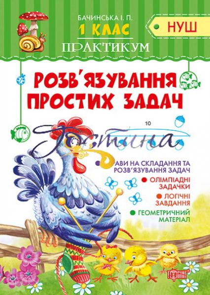Посібник "Практикум 1 клас. Рішення простих завдань" містить цікаві завдання по програмі Нової української школи: