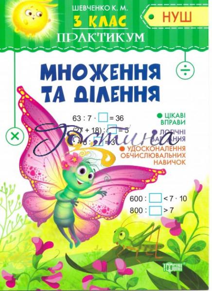 Посібник "НУШ. Практикум 3 клас. Множення і ділення" містить приклади на множення і ділення за програмою Нової української школи для третього класу:
