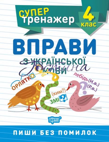 Посібник "НУШ Супертренажер 4 клас Торсінг Вправи з української мови" містить завдання за програмою Нової української школи для четвертого класу.