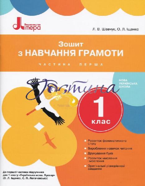 Зошит з навчання грамоти частина 1 Шевчук, Іщенко створений у відповідності до першої частини підручника для першокласників "Українська мова. Буквар" видавництва Літера. Зошит спрямований на розвиток писемного та усного мовлення першокласників, містить завдання на розвиток фонематичного слуху та на розвиток мислення. Зошит з навчання грамоти Шевчук ставить на меті сформувати у дітей навички читання, друкування букв та складання звукових схем за допомогою оригінальних завдань різних за складністю. Усі завдання зошита дібрані таким чином, щоб дитина не просто вивчила необхідний матеріал, але й могла навчитись висловлювати власну думку в усній формі. Також у зошиті теми та завдання сформовані з метою формування емоційного інтелекту школяра та розуміння принципів здорового способу життя.