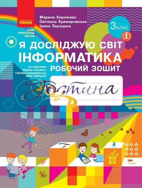 «Я досліджую світ Інформатика 3 клас» - робочий зошит створений до підручника М. Корнієнко і відповідає усім його темам. Зошит допоможе закріпити та поглибити знання з предмету. Сторінка з кожною темою гарно структурована і має привабливий для дитини зовнішній вигляд. Для кожного уроку передбаченні вправи на вивчення та закріплення матеріалу теми, розділ з підготовкою до практичного завдання, розділ з цікавими задачами, а також розділ для підсумовування пройденого матеріалу. «Інформатика 3 клас» робочий зошит Корнієнко містить завдання на інтелектуальну розминку та фізкультхвилинку до кожного уроку. Вправи на фізкультхвилинку завантажуються за допомогою QR коду. Також окремим блоком винесенні основні визначення теми, які необхідно запам’ятати. Кожна тема уроку супроводжується онлайн-завданнями, які стають доступними завдяки QR-коду.