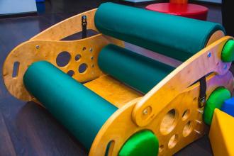 Як відомо, на відміну від тактильної інформації, пропріоцептивна, або ж кінестетична, сприймається в глибині тіла - м’язами, сухожиллями, суглобами. Чим краше розвинена наша кінестетична інформованість, тим правильніше ми відчуваємо себе в координатах простору по відношенню до інших людей або предметів.Діти з сенсорнорною недостатністю відчувають своє тіло недостатньо чітко, діти з підвищеною ж чутливістю навпаки - занадто гостро. Тому на базовому першому рівні сенсорної інтеграції іде робота саме з набуттям «зазамленості», фізичної впевненості, відчуттям тіла як функціонального сенсомоторного інструменту.І «Сквізер» тут стане хорошим доповненням до інших видів терапевтичних заходів. Діти, що постійно знаходяться в пошуку глибоких пропріоцептивних відчуттів, будуть у захваті від процесу протискання між валиками «Сквізера». Додаткова стимуляція тисненням сприяє заспокоєнню через набуття фізичної впевненості і підвищенню рівня уваги. А лежачи між валиками, дитині буде легше й комфортніше завершити або ж підготувати завдання, що потребують більшої уваги і концентрації. Обладнання дає більше, ніж просто відчуття глибинного тиснення. Це дозволяє дітям набувати сенсомоторних навиків, досягати усвідомлення кордонів свого тіла. Застосування: протискання через валики, як через машину для віджимання білизни.  * Розміри «Сквізера»: Д 68 см х Ш 75 см х В 40 см* Використання з 5 років* Максимальне навантаження на валики - до 60 кг* Функція регулювання ступення тиснення валиків через зміну натяжіння резинок* Підходить для роботи вдома, навчальному закладі* Підходить в тому числі роботи з дітьми з сенсорними розладами й розладами аутичного спектру* Використання дітьми лише під наглядом дорослих