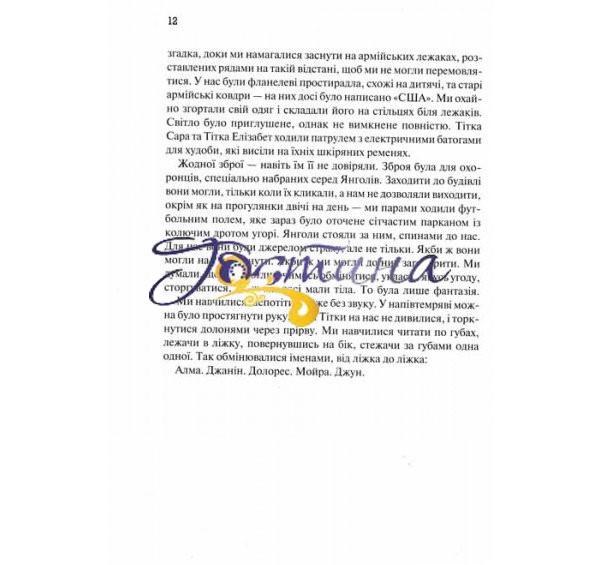 Ти не маєш права читати, писати і бігати вранці. Тобі не можна працювати, володіти якою-небудь річчю і прагнути чогось. Тобі заборонено любити. Бо ти – Служниця…