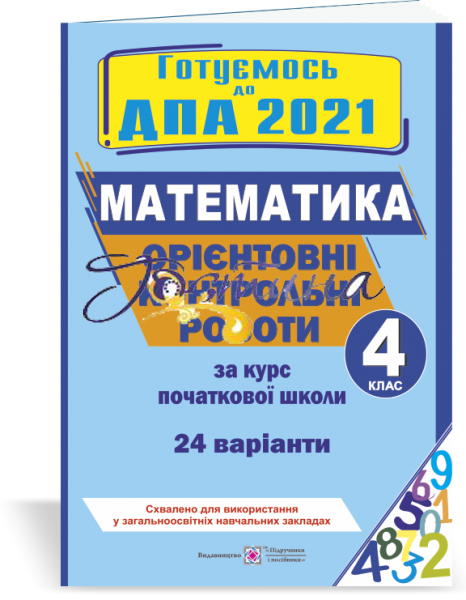 Посібник містить 24 варіанти орієнтовних контрольних робіт з математики за курс початкової школи. Роботи складено відповідно до вимог чинної програми з математики для 1–4 класів, «Інструктивно-методичних матеріалів щодо контролю та оцінювання навчальних досягнень учнів початкових класів загальноосвітніх навчальних закладів» і підручників з математики.
