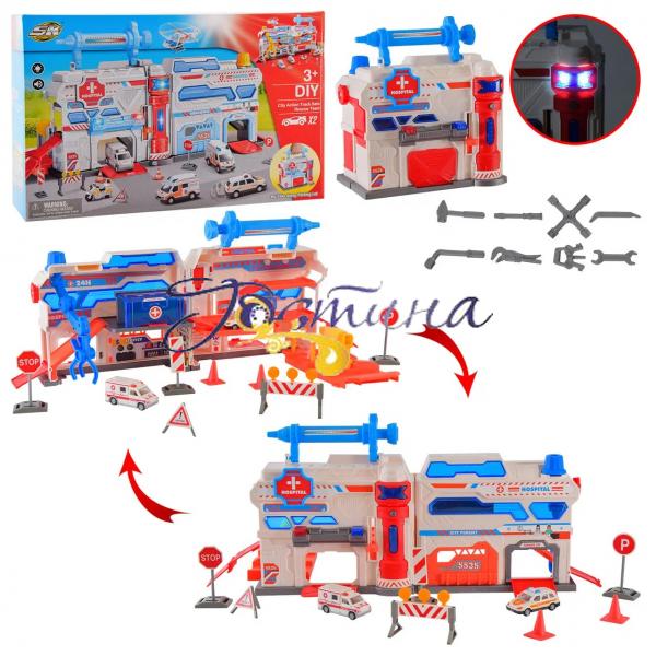 Паркінг арт. SK-599HA (18шт/2) батар. пластик+метал, 2 машинки в комплекті, світло, звук, короб. 43, 5*12, 5*28см